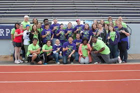 Around dinnertime the alumni started to get in town and as we were finalizing details and making signs we were all telling funny Driving Jacks stories.  Some of the new Driving Jacks members were listening to us and had no idea what we went through to get Driving Jacks where it was today.  It is completely different from the small organization of my time. Haha.  Oh the stories we kept to ourselves. LOL.  At 9:30 the Alumni committee was supposed to meet to talk about things and take an inventory of the things each of us were supposed to bring (Robby-bibs and safety pins, Hector-signs, gift cards, black bags, Spencer-water and bananas, me-timing chips, shirts, trophies, cupcakes, serving spoons, and more!) plus Courtney was there with last minute stuff also.  We put all of the timing chips on the bibs and about 7 of us took a trip down to the football field to make sure we knew exactly what to do in the morning.  The start line was to be at the 20 yard line on the home side of the stadium and the runners would run around the track, through the tunnel, and out to the rest of the course back to the finish line that would be at the 20 yard line on the visitor side.  Afterwards we went back to the office to finalize the timing chip system.  Some people I knew would not be able to come (but they wanted to donate to Driving Jacks anyway) so we took the off the list of people who were needed a timing chip.